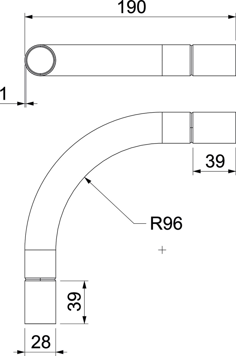 • Bochthoek: 90 °