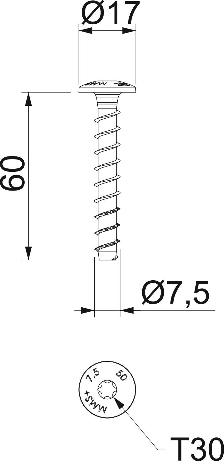 Rail anker met vlakke panhead 7,5x60 staal verzinkt VVE=50 OBO