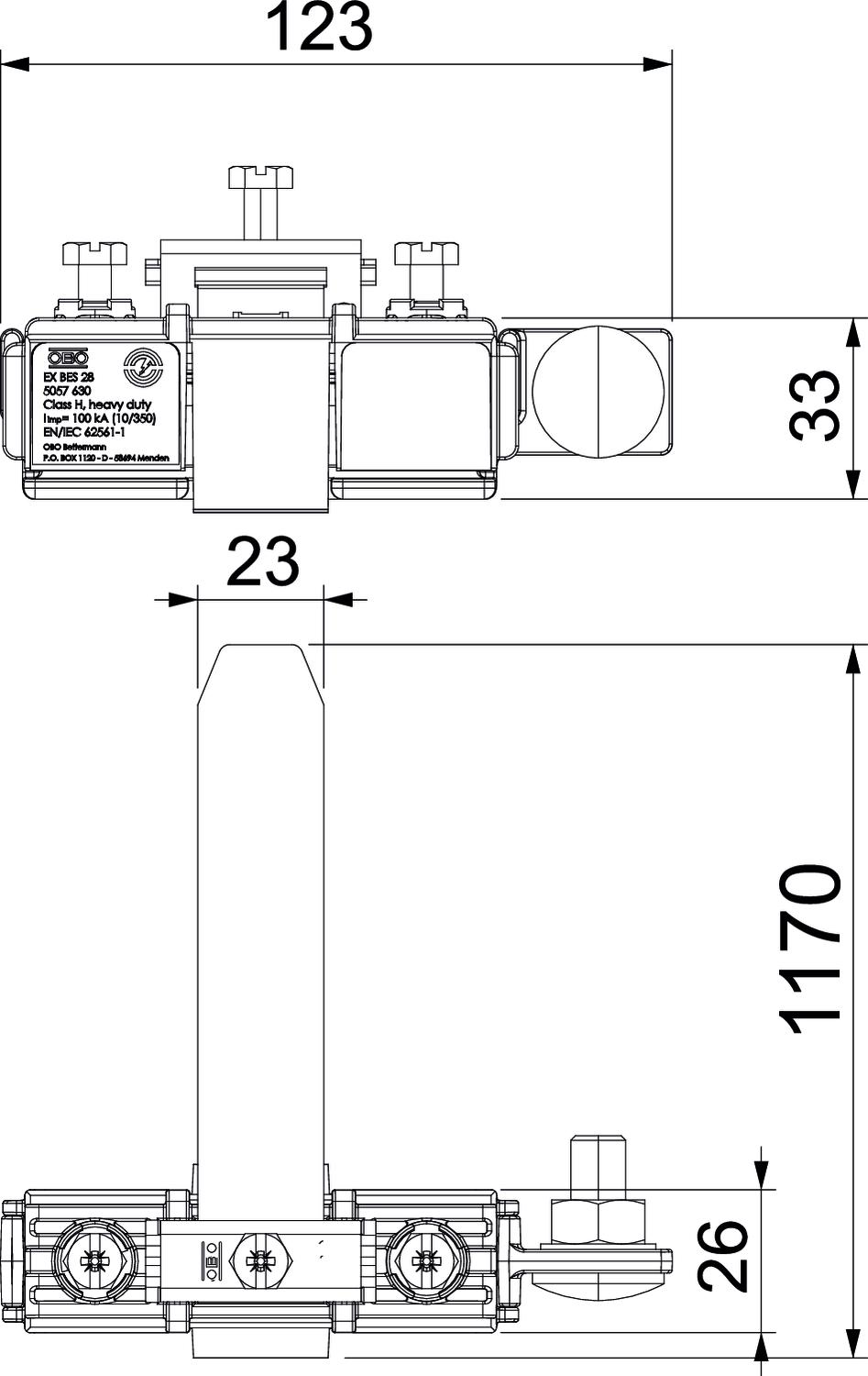 - Dwarsdoorsnede aan te sluiten kabel: 16 - 78 mm²