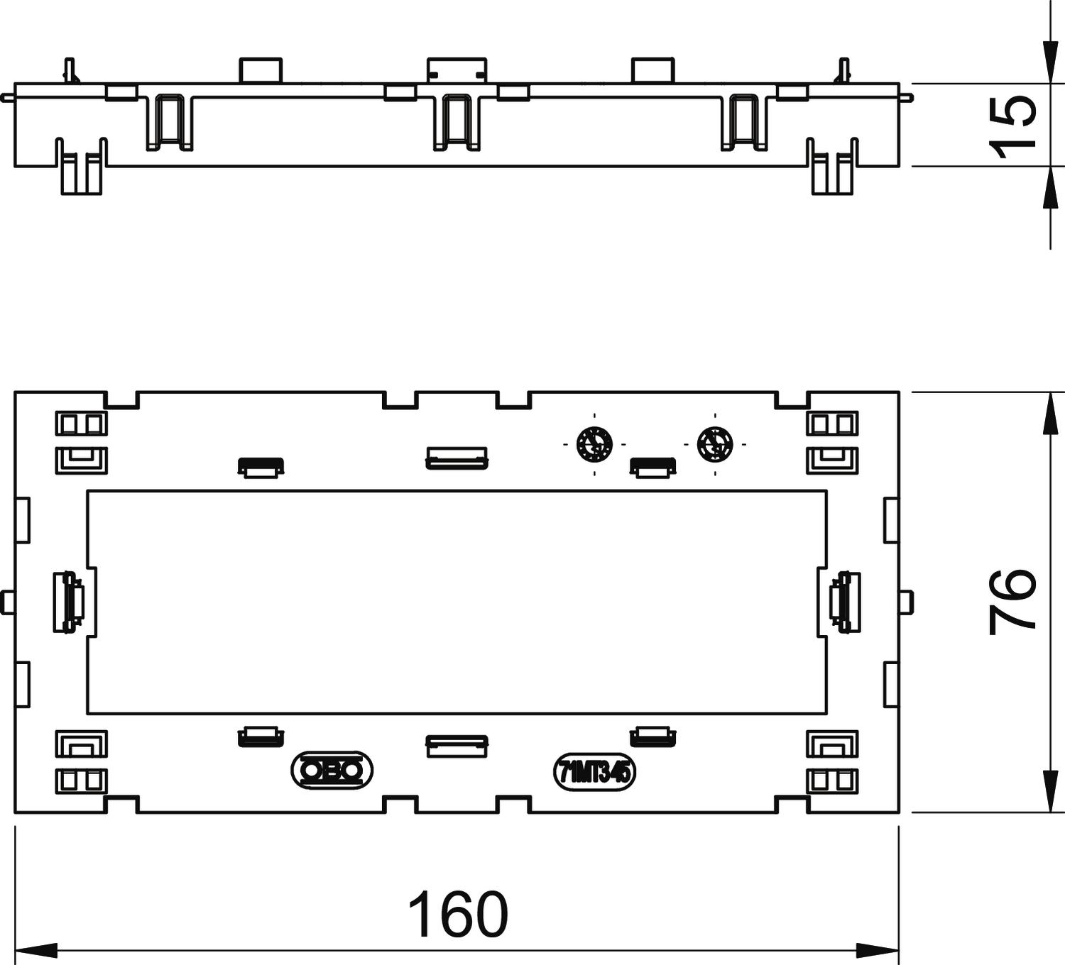 Montagedrager Module 45 opening 15x76x160 lichtgrijs VVE=5 OBO