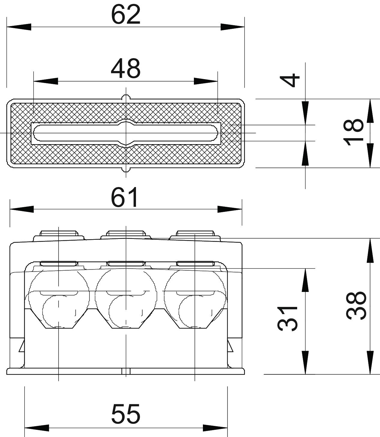 Druk-ISO-zadel voor 3 kabels 6-16mm Polystyreen lichtgrijs RAL7035 VVE=25 OBO