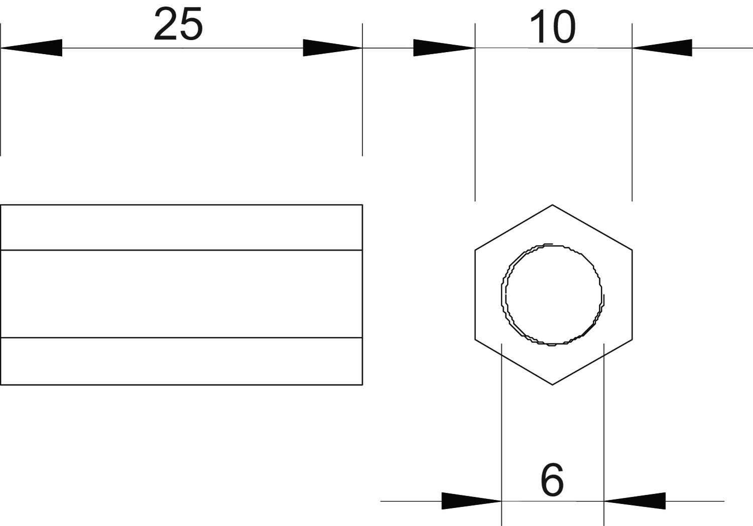 Afstandsmof M6x25mm zink galvanisch verzinkt VVE=100 OBO
