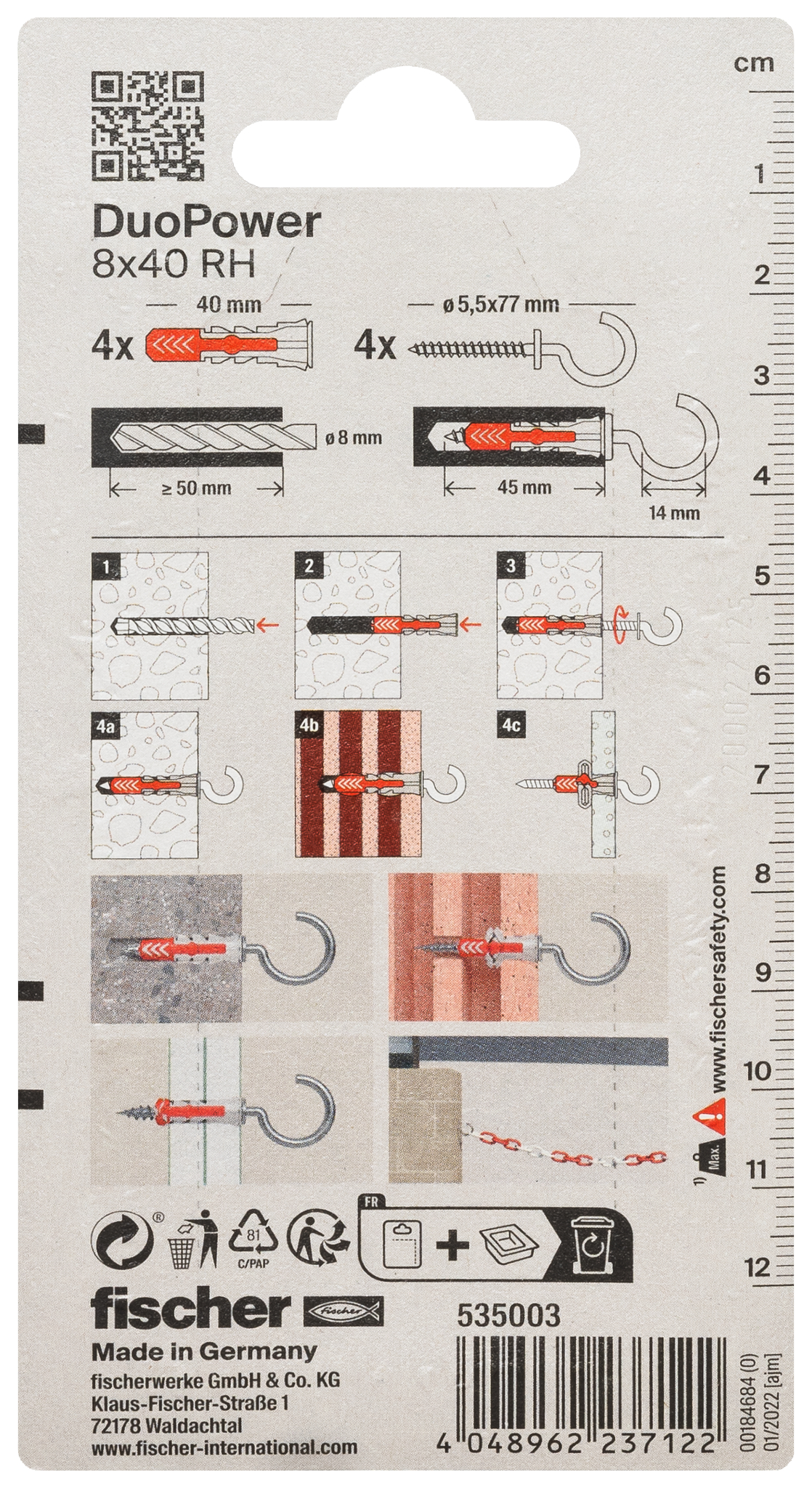 Plugset DuoPower 8x40 ronde haak VVE=5 Fischer