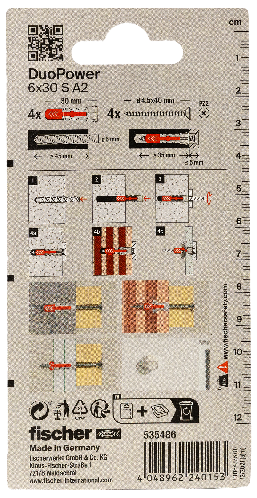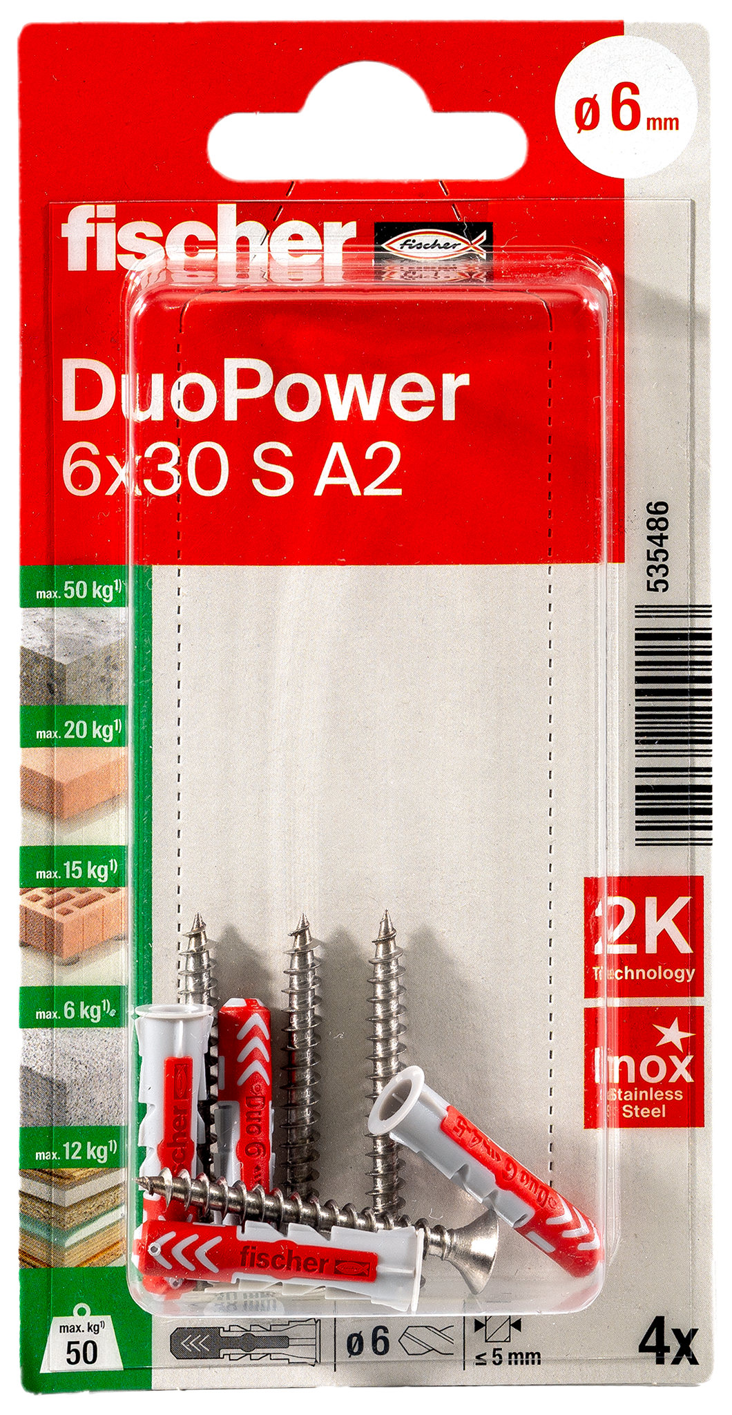 • Type: FISCHER ZB DUOPOWER 6X30 S A2 K NV