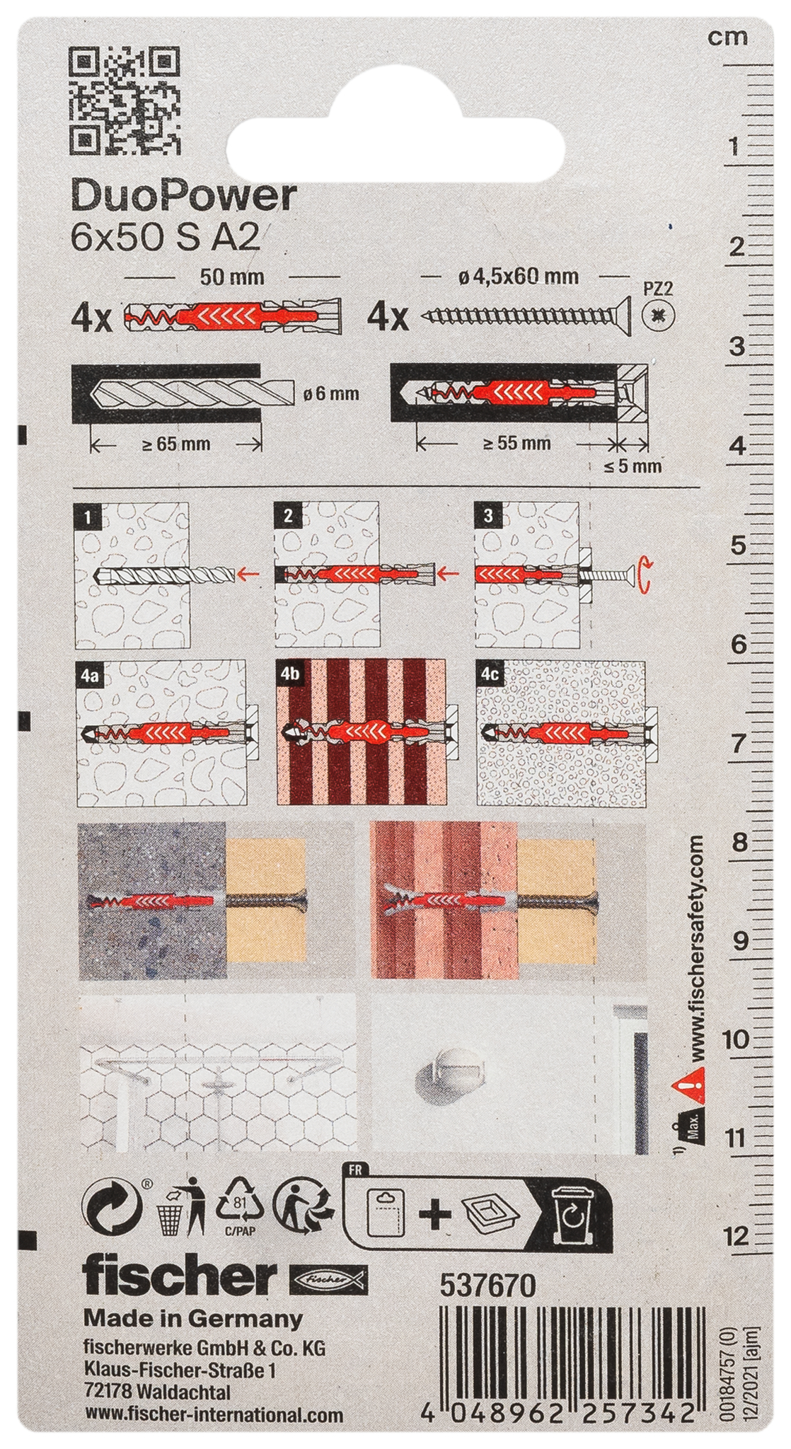 - Type: FISCHER ZB DUOPOWER 6x50 S A2 K NV
