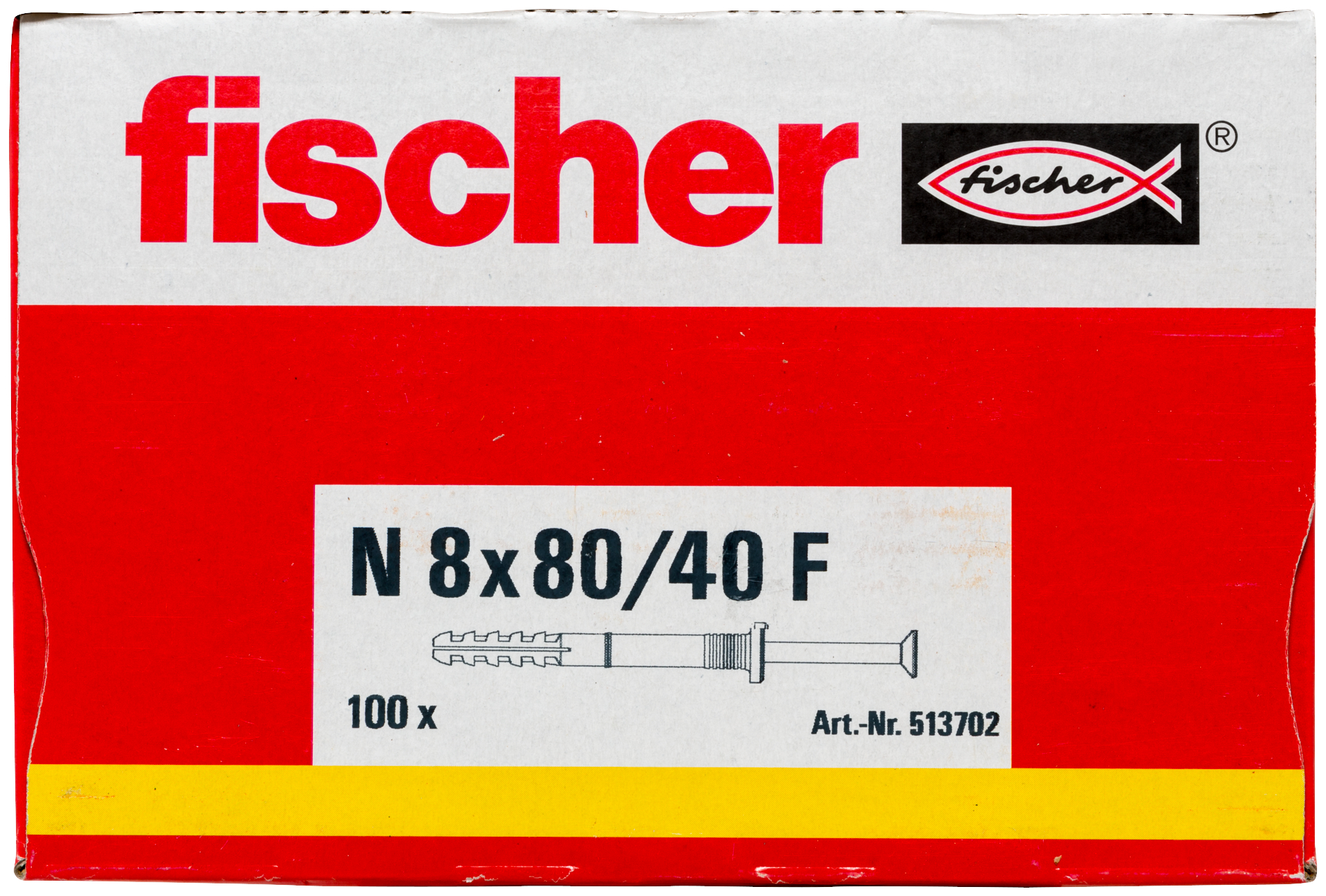 Nagelplug N 8x80/40 F platte kop VVE=100 Fischer