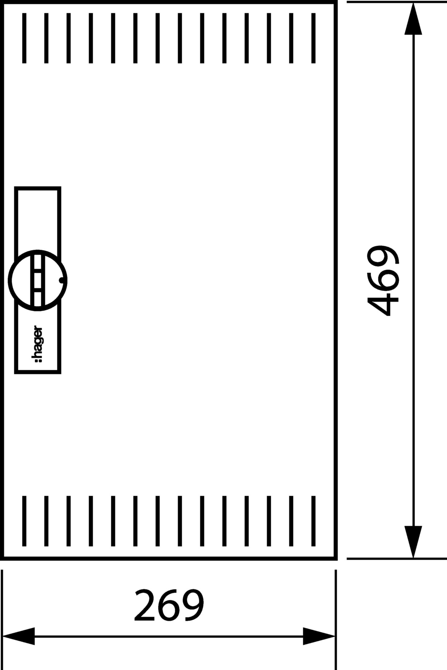 Deur rechts geventileerd 160/205mm diepe verdeler H 500xB 30 Hager