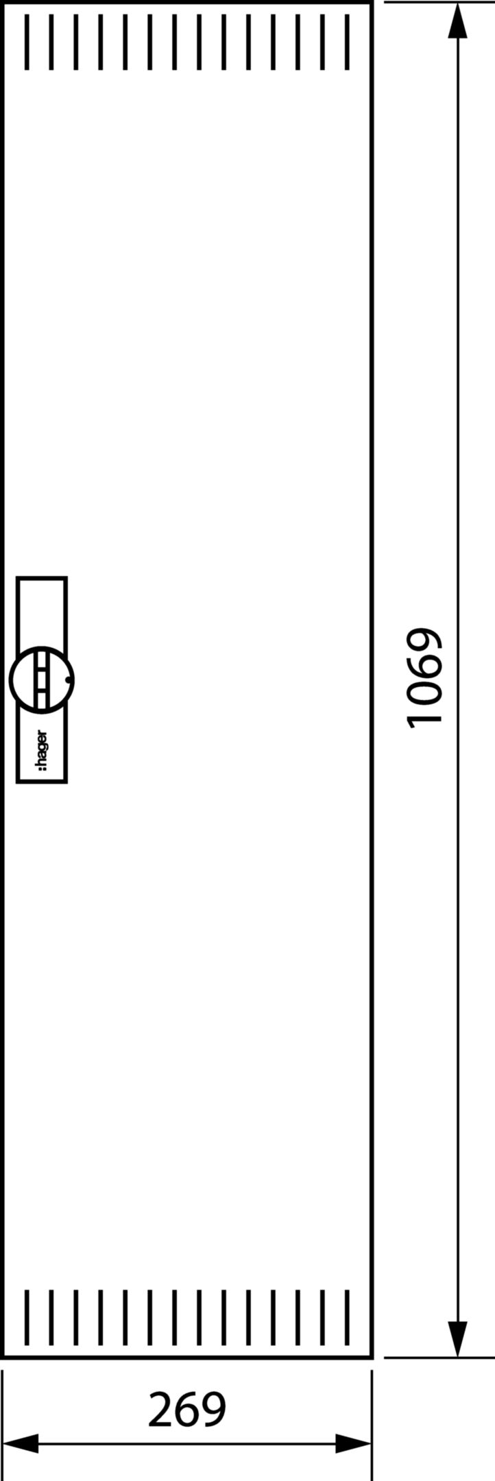 Deur rechts geventileerd 160/205mm diepe verdeler H 1100xB 3 Hager