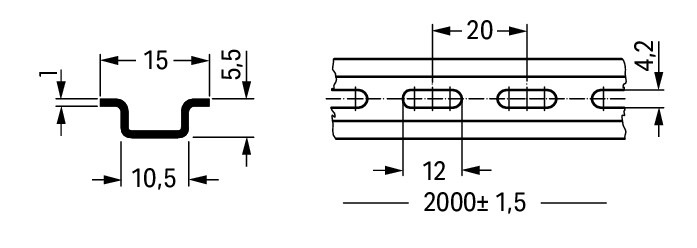 Stalen draagrail 15 x 5,5 mm 1 mm dik zilverkleurig 210-111 Wago