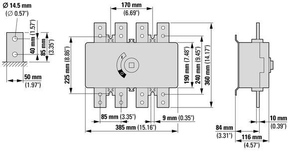 Lastscheider DUMECO 1600A 3-polig +SN 2xM12 zonder as en draaigr. Eaton