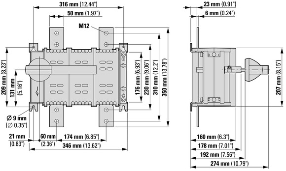 Lastscheider DUMECO DC 1250A 2-polig draaigreep K4AG Eaton