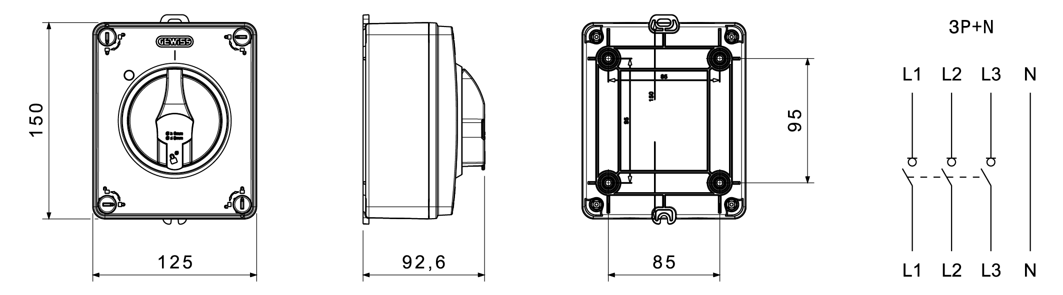 LAST/DRAAISCHAKELAAR IN KUNSTSTOF BOX-32A 3P+N-VERGRENDE Gewiss