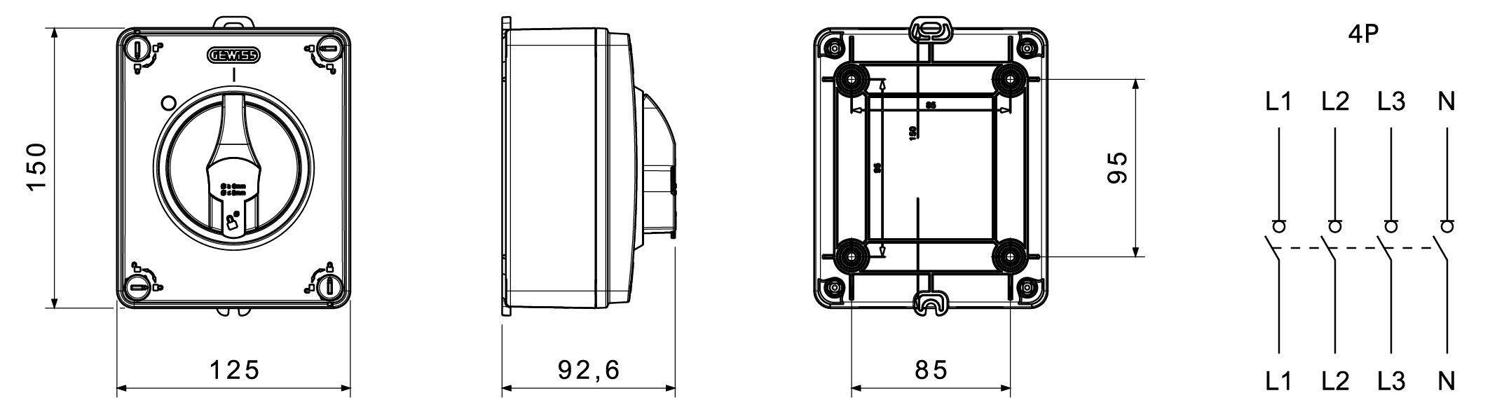LAST/DRAAISCHAKELAAR IN KUNSTSTOF BOX-40A 4P-VERGRENDELB Gewiss