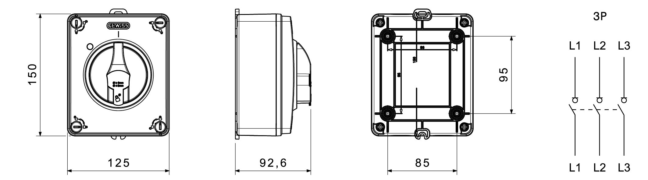 LAST/DRAAISCHAKELAAR IN KUNSTSTOF BOX-25A 3P-VERGRENDELB Gewiss