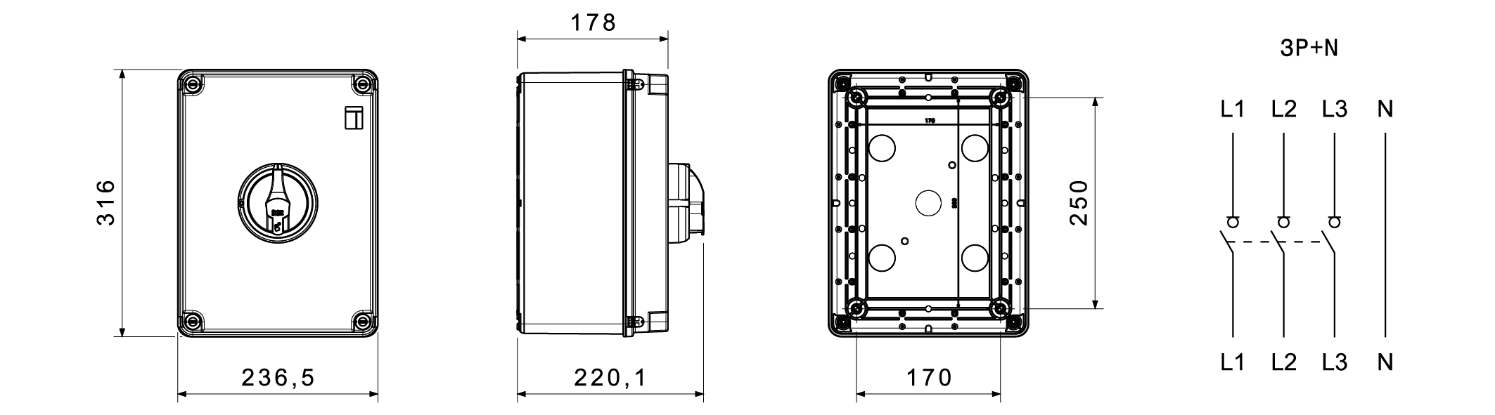 LAST/DRAAISCHAKELAAR IN KUNSTSTOF BOX-160A 3P+N-VERGREND Gewiss