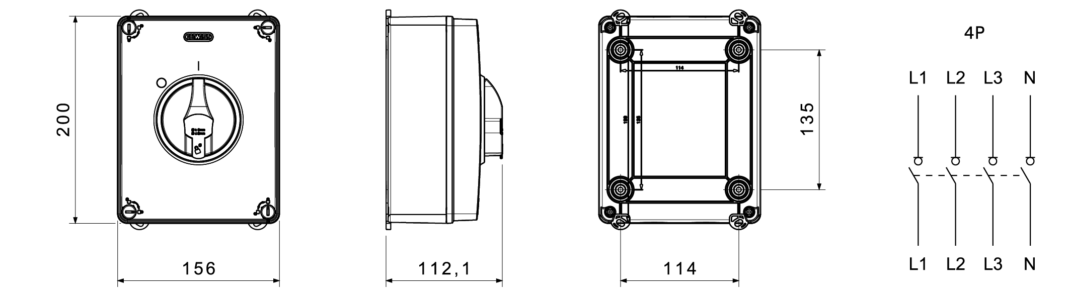 LAST/DRAAISCHAKELAAR IN KUNSTSTOF BOX-63A 4P-VERGRENDELB Gewiss