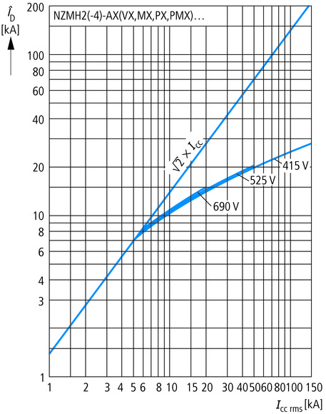 - Nom. afschakelvermogen Icu bij 400 V, 50 Hz: 150 kA