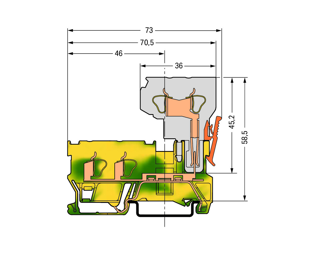 2-draads/1-pins PE-basisklem 4mm² draagrail 35x15/35 VVE=50 Wago