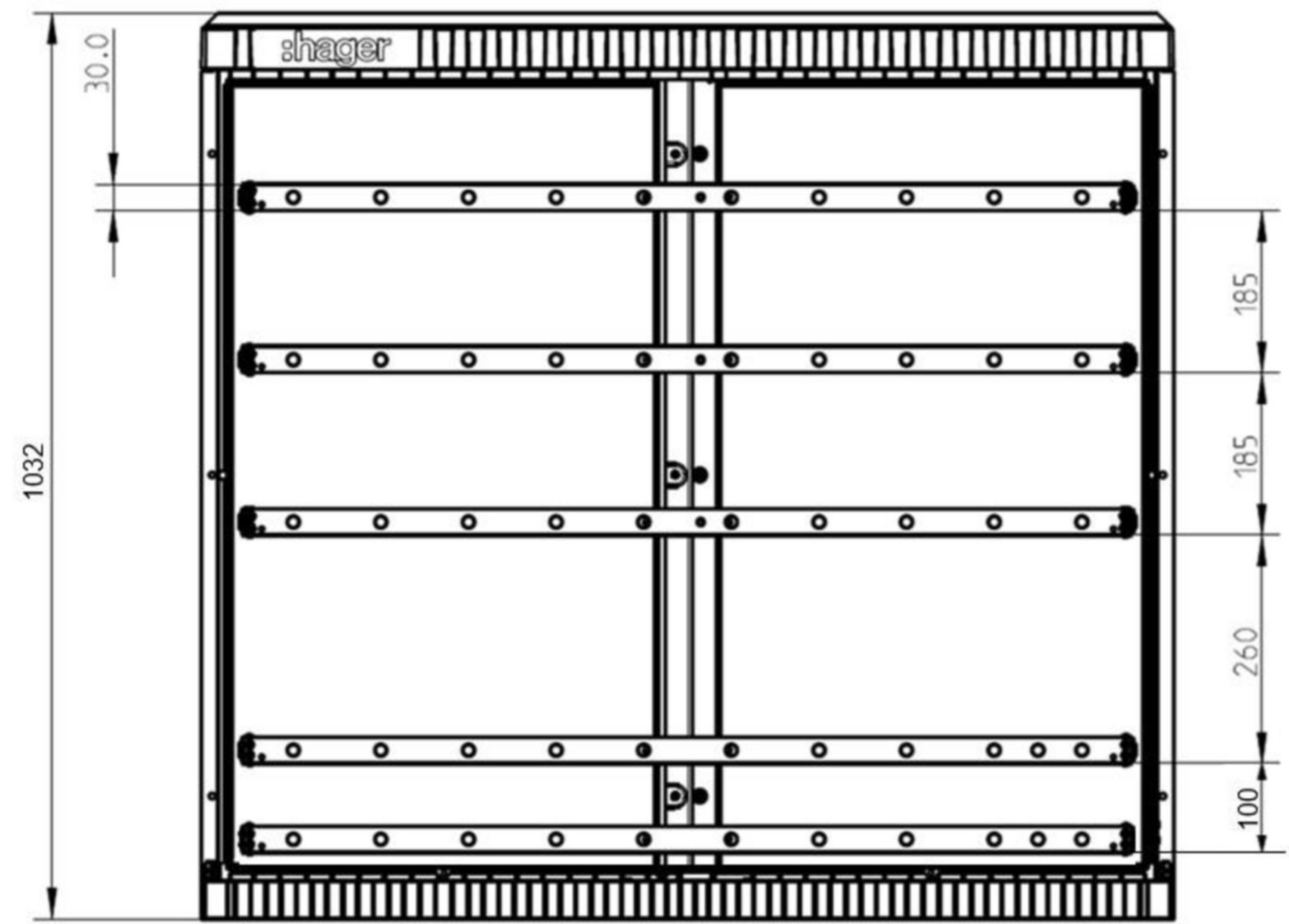 Polyester verdeelkast grootte 2/1005 rail 1005x1110x315mm Hager