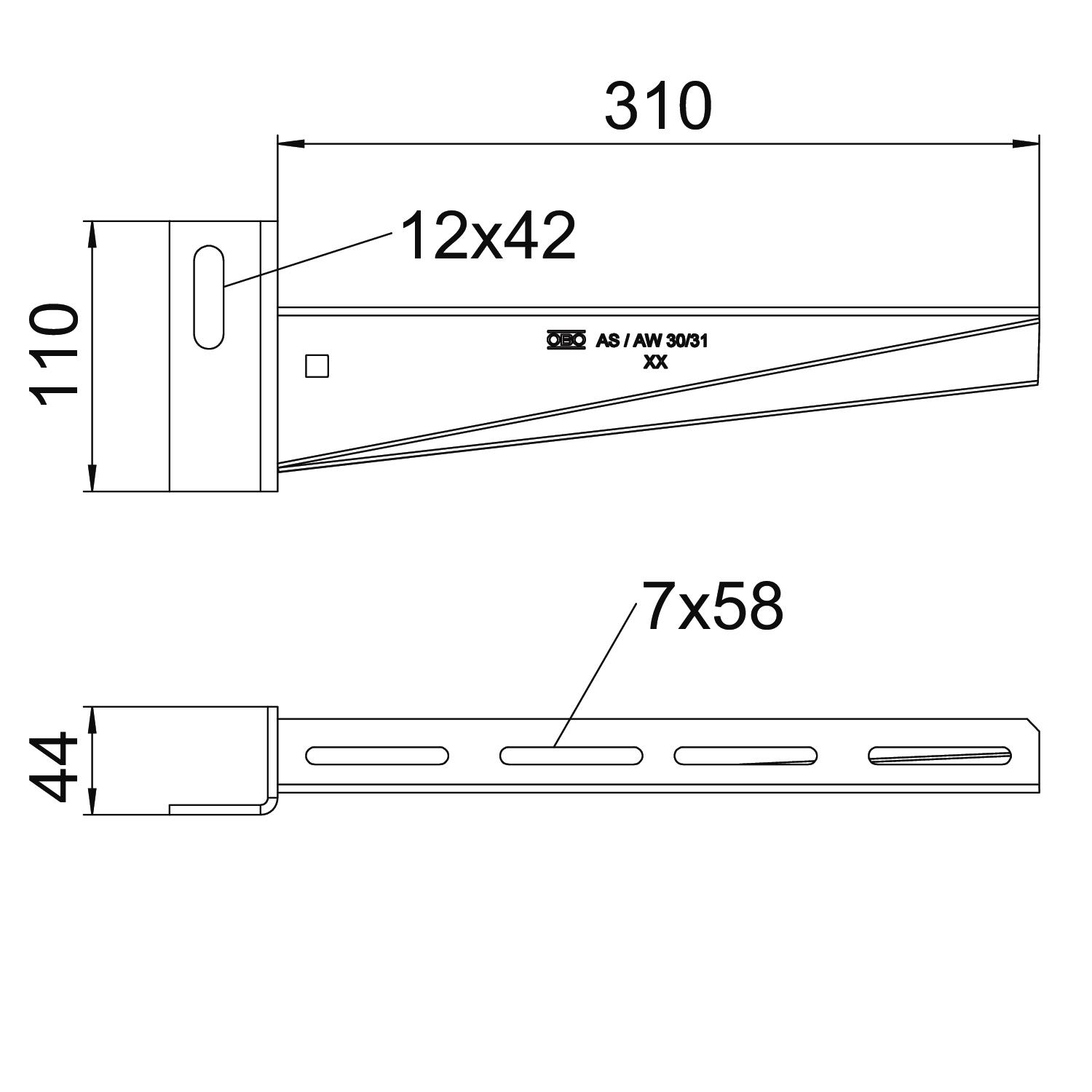 Muur- en steunbeugel met hoek head plate B310mm OBO