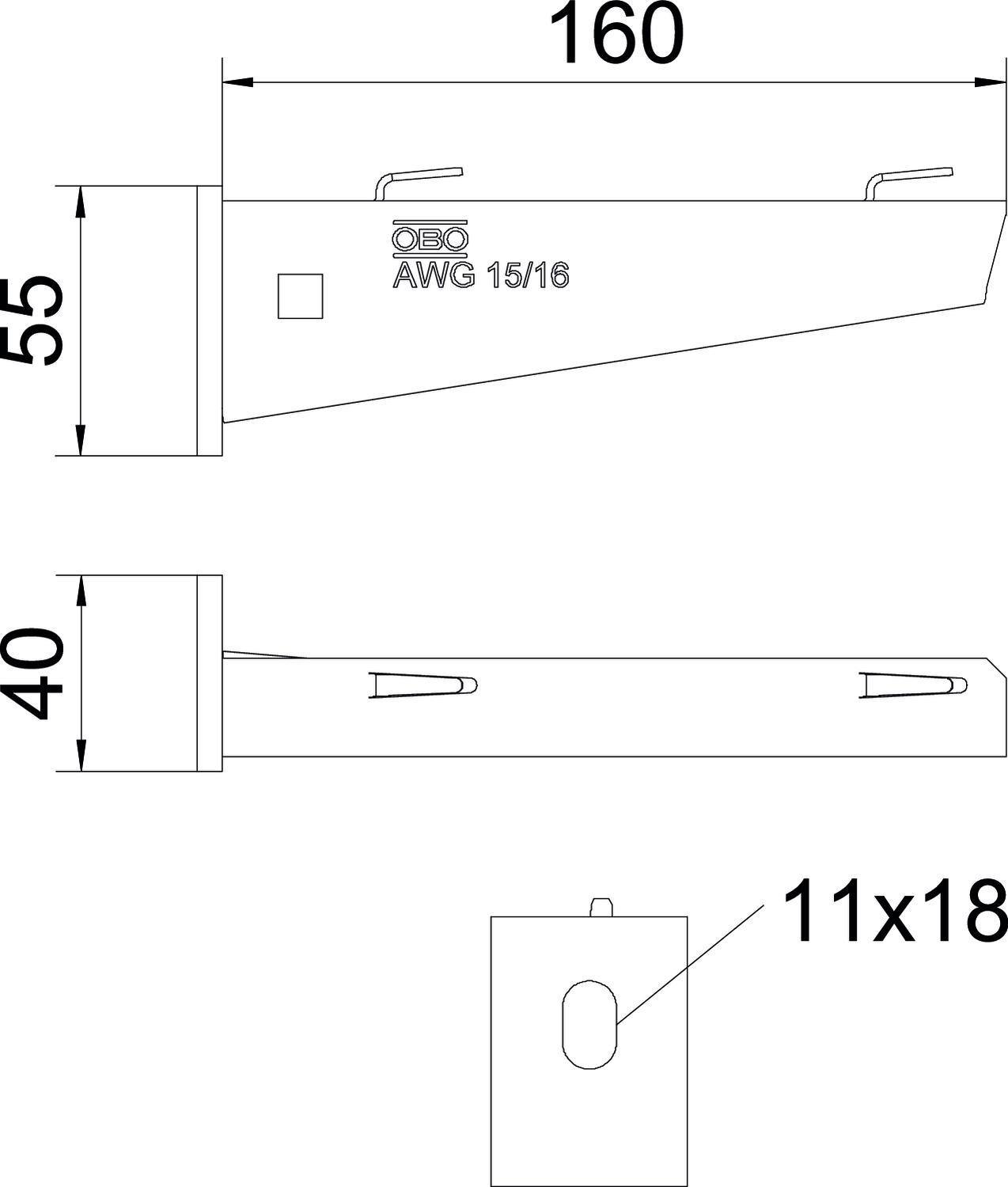 Wand- en profielconsole voor draadgoot B160mm staal zinkt OBO