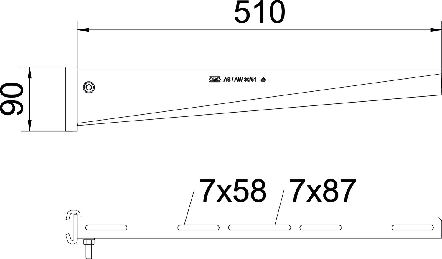 Profielconsole voor IS 8-profiel B510mm staal TV OBO