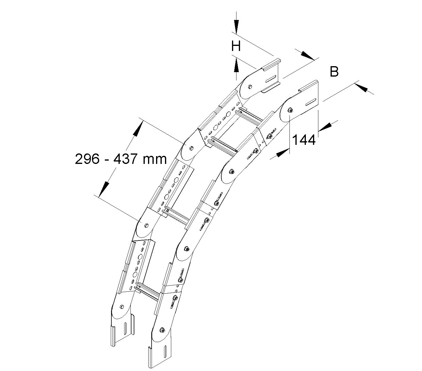 - Geschikt voor kabelladderhoogte: 100 mm