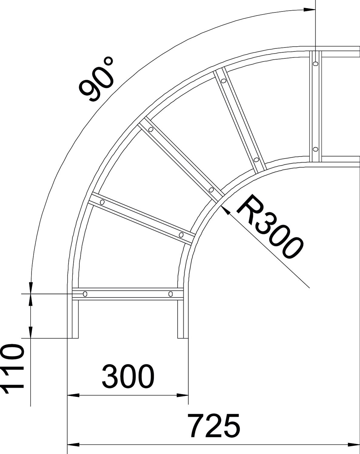 • Binnenstraal: 300 mm