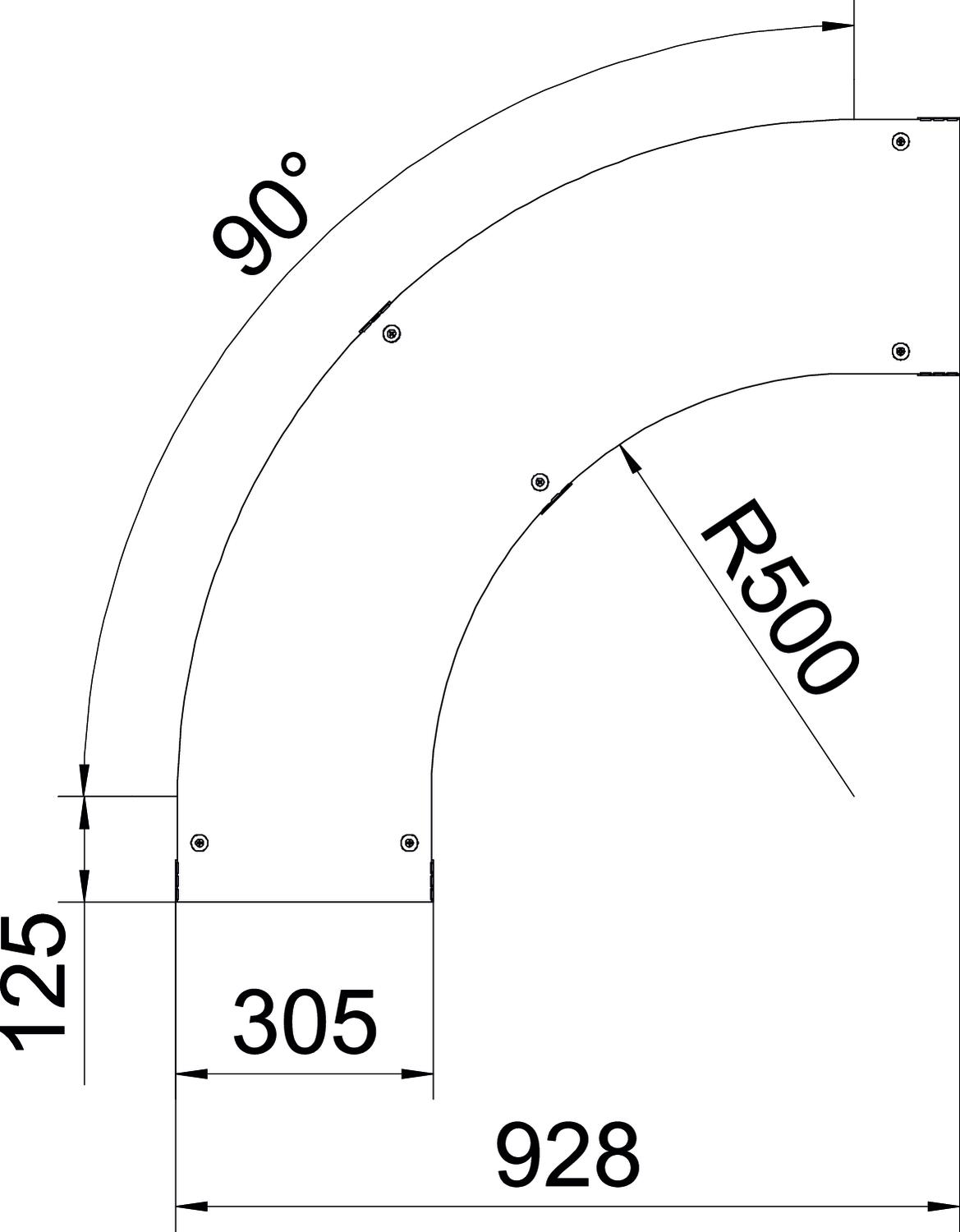 90gr. Bocht/hoekstuk kabelladder LB 90 B300mm Staal thermisc OBO