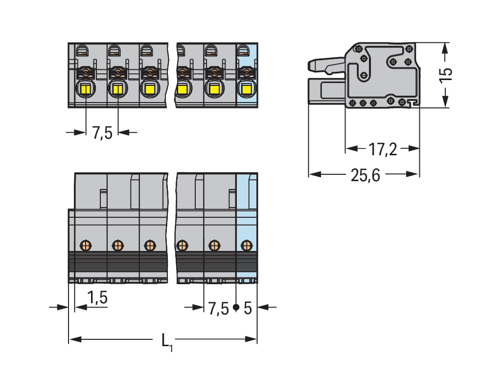 - Rastermaat contact: 7,5 mm