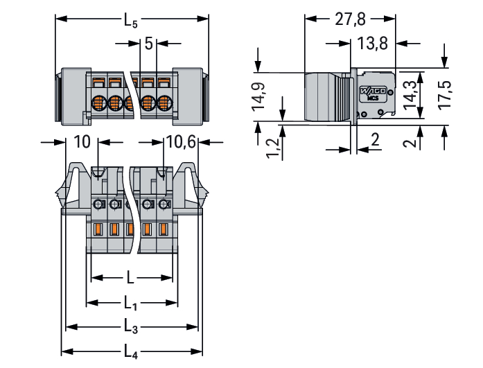 - Aansluitbare geleiderdoorsnede eendraads: 0,08 - 2,5 mm²