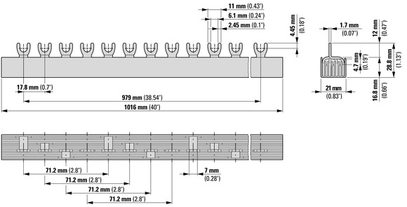 GVK Kamrail Vork 3-Fase+N L1-L2-L3-N inkortbaar excl.eindkap Eaton