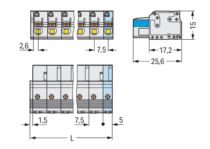 - Aansluitbare geleiderdoorsnede eendraads: 0,2 - 2,5 mm²