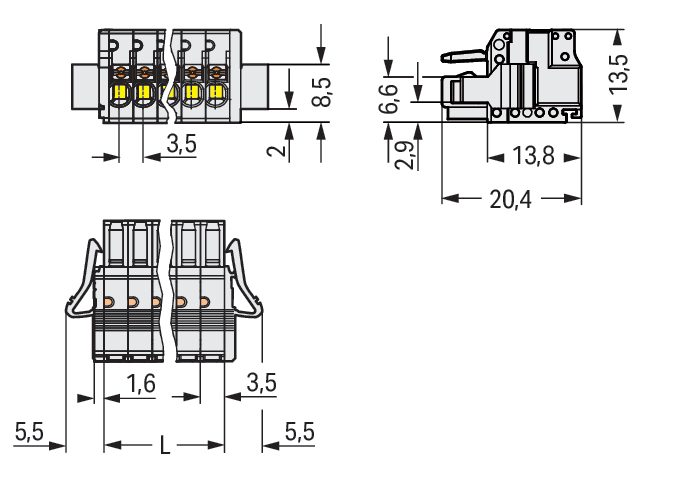 • Aansluitbare geleiderdoorsnede meerdraads: 0,2 - 1,5 mm²