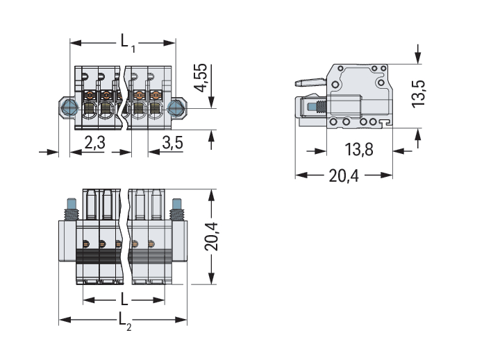 • Aansluitbare geleiderdoorsnede eendraads: 0,2 - 1,5 mm²