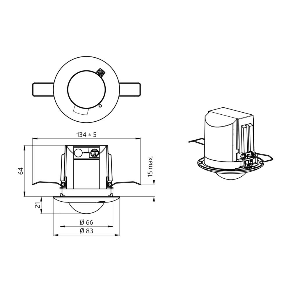 • Inbouwdiameter: 64 mm