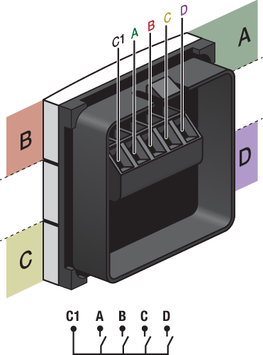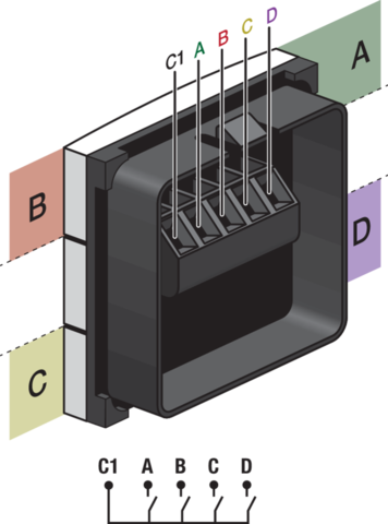 Sokkel 4-voudige pot.vrije drukknop 24V N.O. schroefbev. Niko
