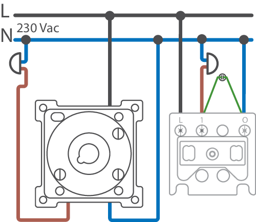 Sokkel drukknop N.O. 6A amberkleurige led E10-lampvoeding Niko