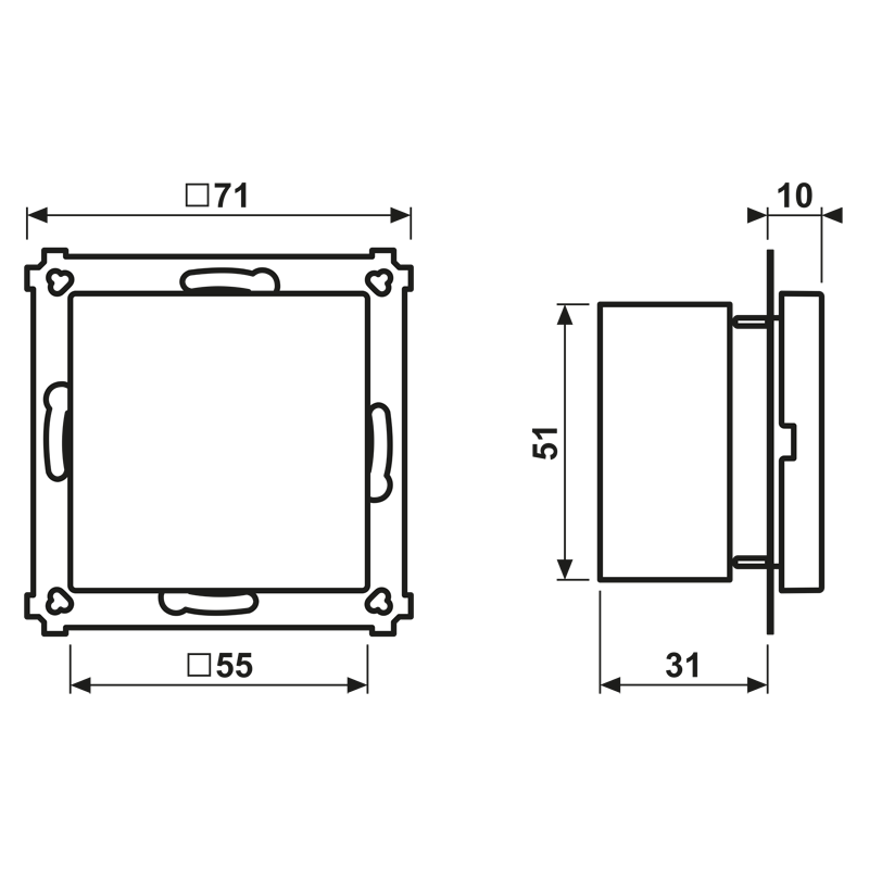 - Schakelmateriaalbreedte: 71 mm