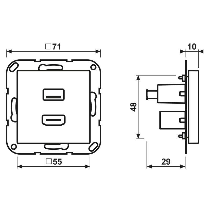 Afdekking A500 aluminium voor HDMI/USB Jung
