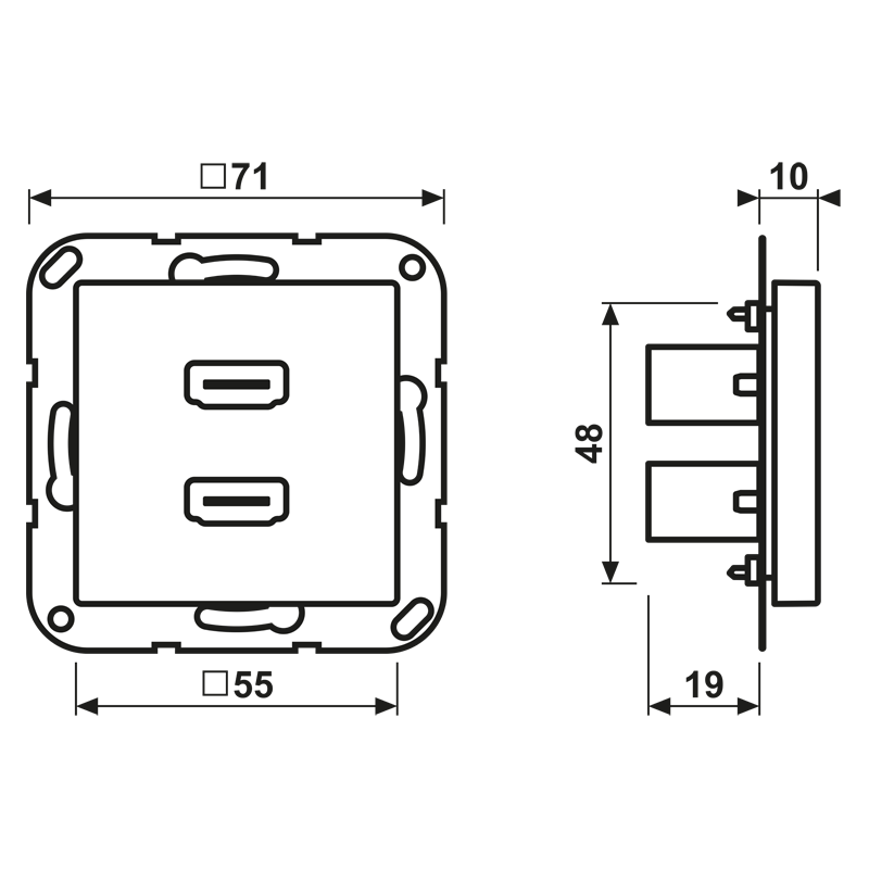 Afdekking A500 aluminium voor 2xHDMI Jung