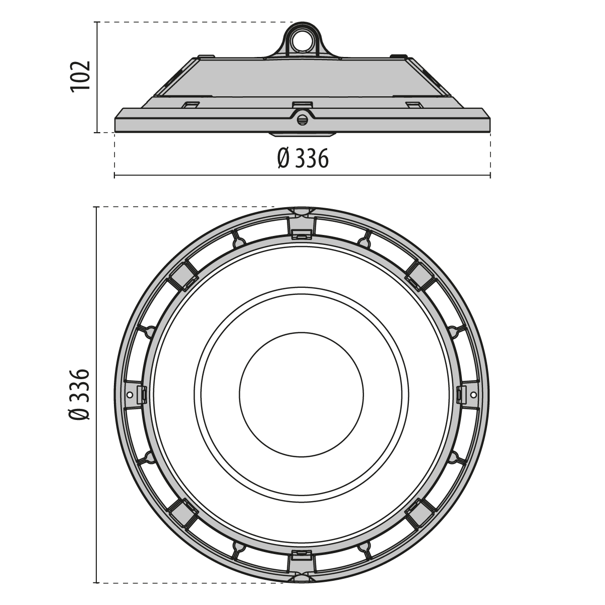 LED-High-bay en low-bay armatuur 4000K 200W dimbaar 1-10V ci Performance in Lighting