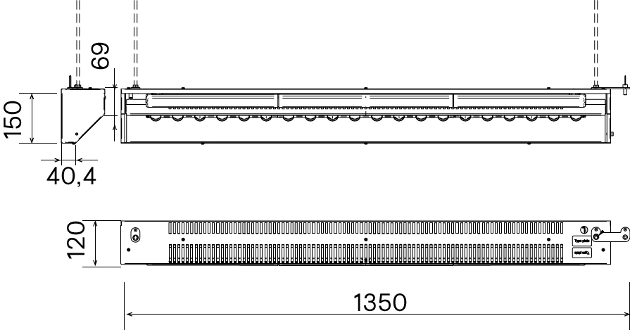 • Inbouwlengte: 1350 mm