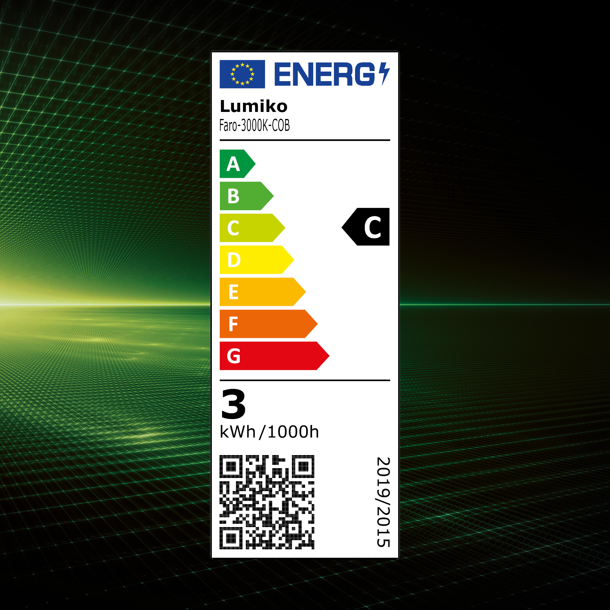 - Energie-efficiëntieklasse van de lichtbron volgens EU regelgeving 2019/2015: C