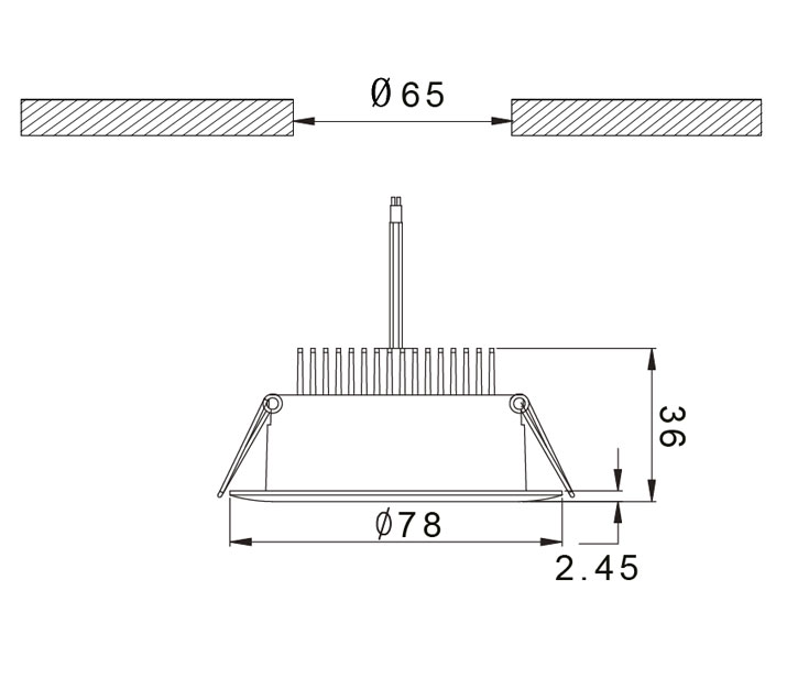 - Inbouwhoogte/diepte: 36 mm
