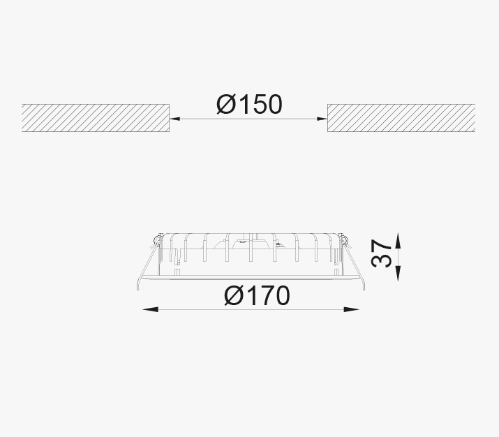 - Inbouwdiameter: 150 mm