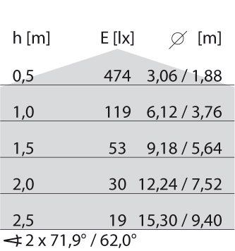 - Lichtverdeling: Symmetrisch