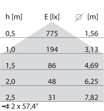 - Specifieke lichtstroom armatuur: 72,6 - 72,6 lm/W
