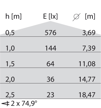 - Specifieke lichtstroom armatuur: 72,6 - 72,6 lm/W