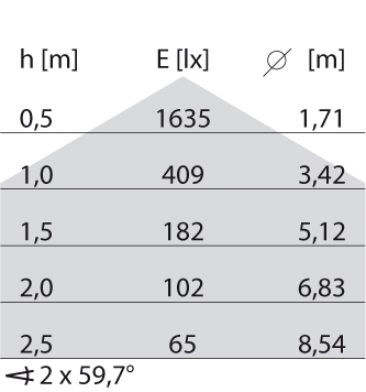 - Lichtverdeling: Symmetrisch